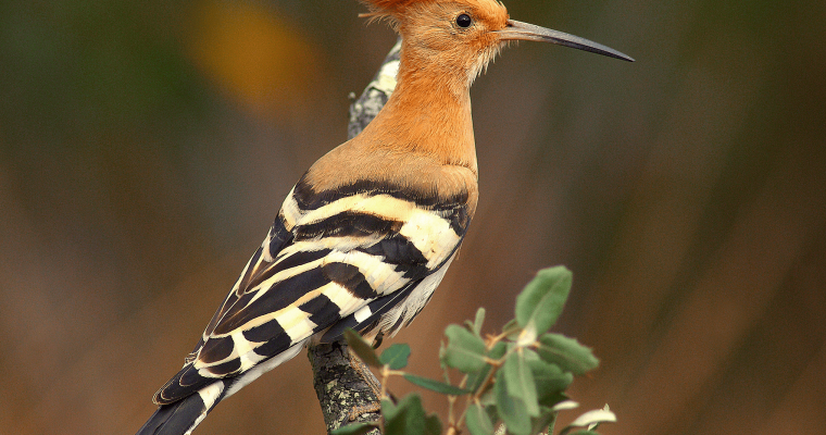 Esta ave es inconfundible, destacando por el patrón geométrico blanco y negro de sus alas, que contrasta con el plumaje ocre de su cabeza y cuello. Sin embargo, su rasgo físico más emblemático es, sin duda, su prominente cresta. Al desplegarse, se asemeja a un elegante abanico con puntas negras.